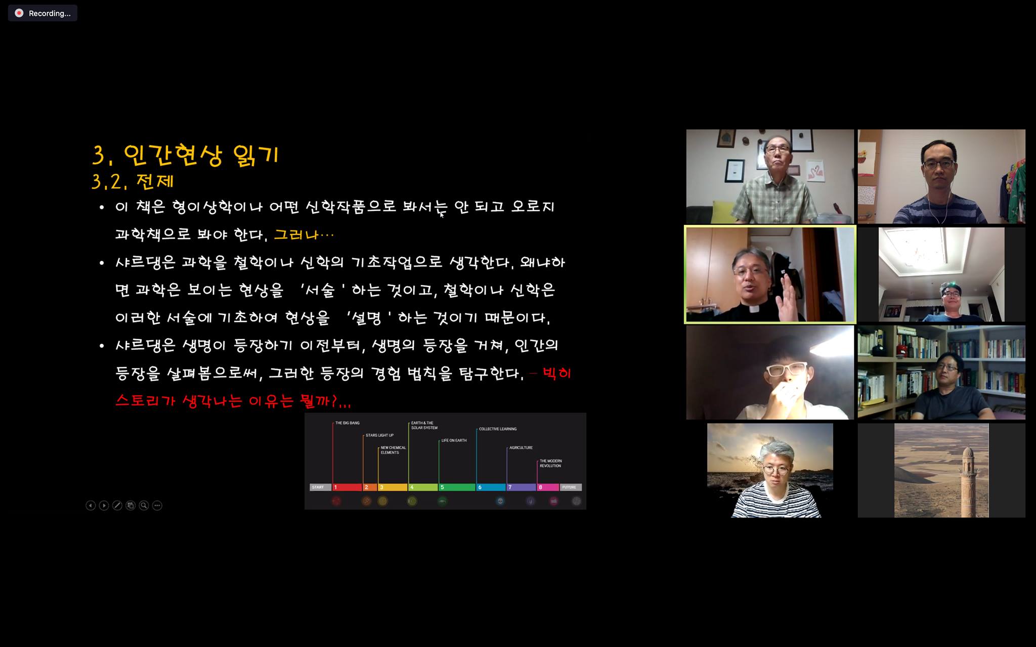 8월 모임에서는 루터교 오세조 목사님의 찰진 발제 덕분에 샤르댕에 대한 이해를 높인 시간이었습니다.
