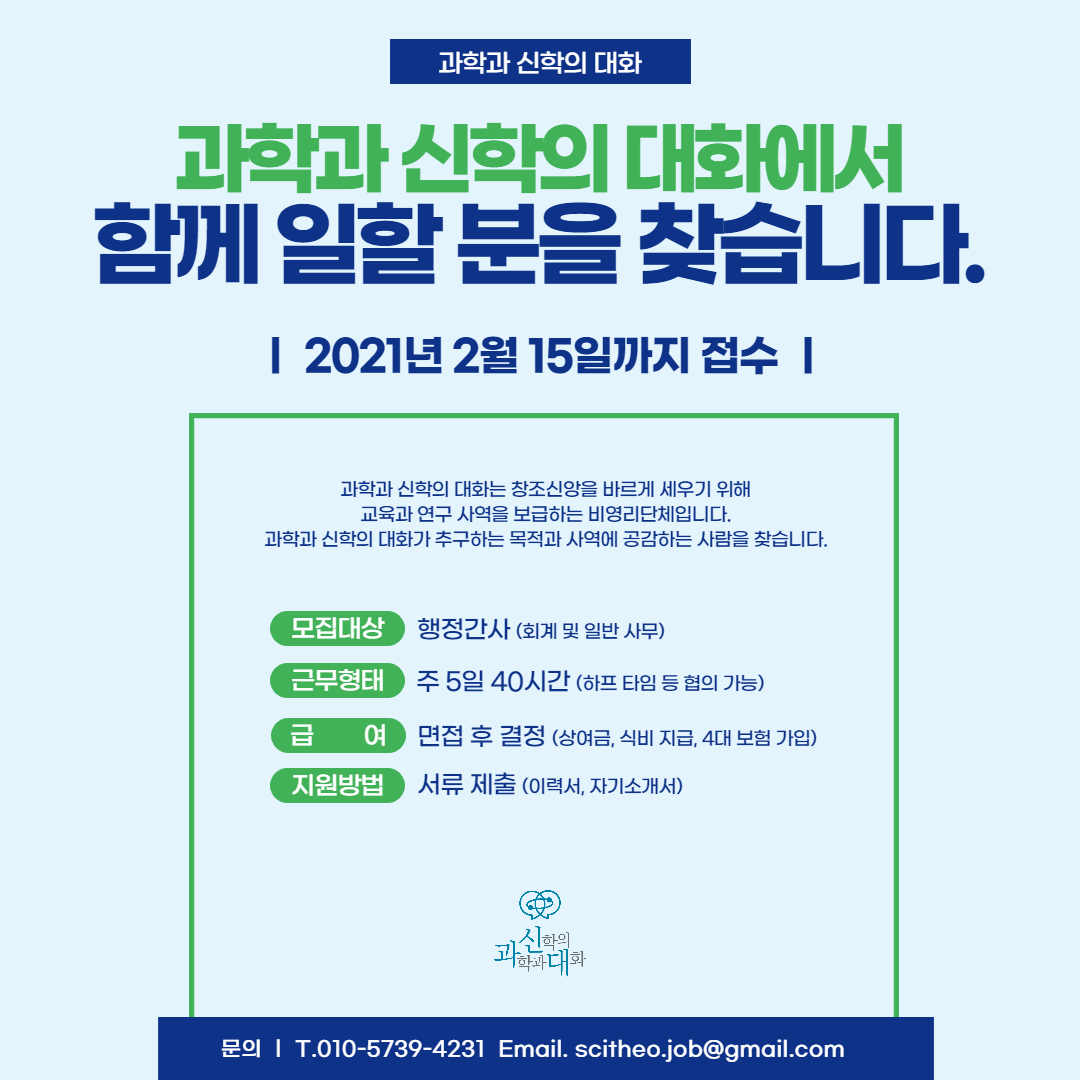 <과학과 신학의 대화> 간사 채용 안내