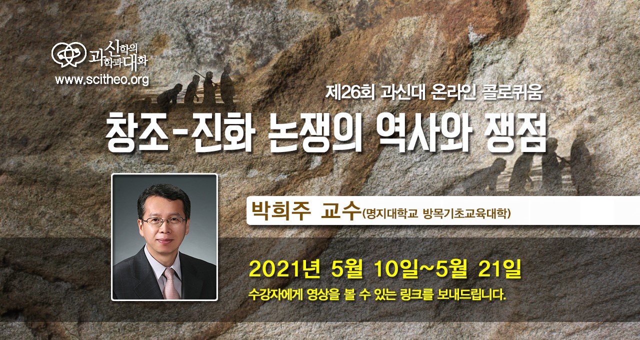진화론은 처음에 영국에서 시작되었지만 사회적 논쟁으로 불붙은 곳은 미국이었습니다. 오늘날 전세계로 확산된 창조론 운동은 신학과 과학의 영역을 뛰어넘어 미국의 지성사에서도 중요한 자리를 차지하고 있습니다. 이번 콜로퀴움에서는 과학사를 전공하신 박희주 교수님으로부터 1920년대 반진화론 운동으로 시작해 1960년대 창조론 운동으로 이어지는 미국의 창조-진화 논쟁을 소개받습니다. 특별히 1920년대 반진화론 운동의 정점이었던 스코프스 법정논쟁과 1960년대 창조론 운동의 정점이었던 아칸소 법정논쟁을 통해 창조-진화 논쟁의 특성을 살펴봅니다. 이를 통해 '창조과학은 과학일 수 있는지?' '공립학교 과학교육에서 창조론은 허용되어야 하는지?'에 대해 고민하고 이야기는 나누는 시간이 되길 기대합니다.