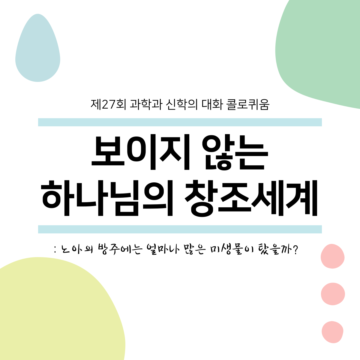 | 제25회 콜로퀴움 "생화학으로 바라보는 창조세계" (0) | 2021.05.20 |