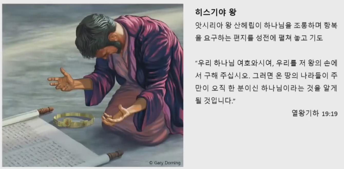 이러한 기후위기에 우리는 어떻게 대응을 해야 할까요? 성경 인물 중 히스기야 왕은 나라가 위기 상황에 처하자 하나님께 나아가서 옷을 찢고 간절히 기도합니다. 하나님은 그의 기도를 들어주십니다. 그런데 바벨론한테 멸망당할 것이라고 선지자가 이야기하자 히스기야는 자신의 때에는 괜찮을 것이라고 대수롭지 않게 여깁니다. 히스기야가 주는 교훈은 기성세대의 무책임한 태도를 돌아보게 하는 것이 아닌가 합니다.